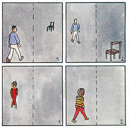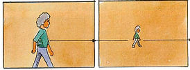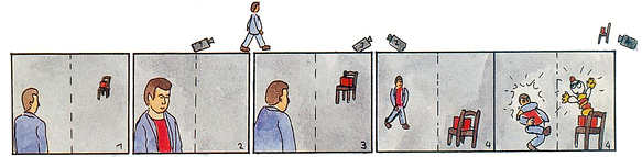 el actor y un objeto, (ej.: silla) siempre en el mismo sector del cuadro.